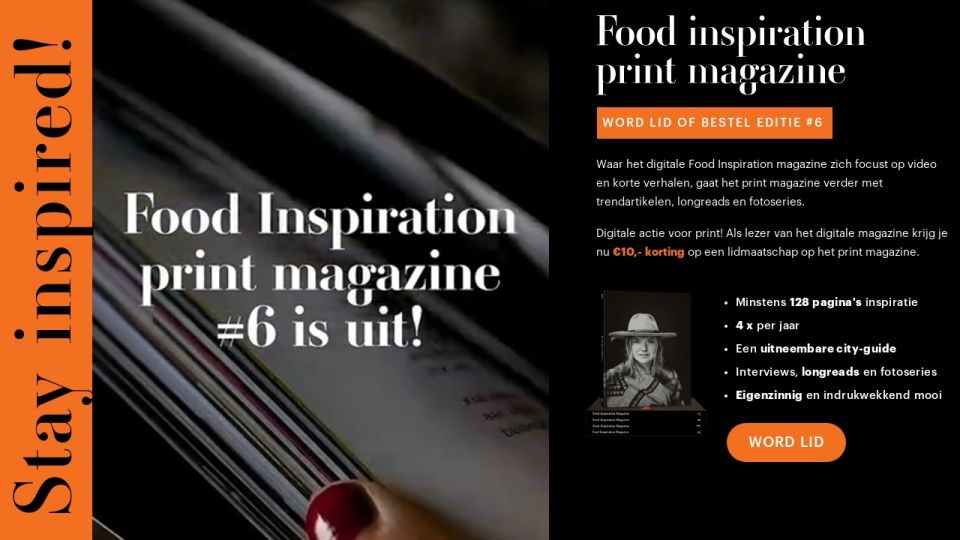 Waar het digitale Food Inspiration magazine zich focust op video en korte verhalen, gaat het print magazine verder met trendartikelen, longreads en fotoseries.