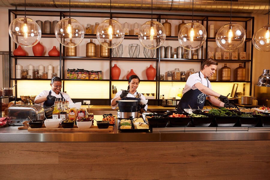 “Pro biedt ook grab and go, maar twintig procent van het aanbod wordt bereid op de locatie van de opdrachtgever zelf. De rest komt uit onze centrale keuken. Premium is een volledig bemand concept waarbij we alles op de locatie van de opdrachtgever zelf bereiden. Klanten kunnen kiezen uit de verschillende concepten en naarmate er meer of minder mensen thuiswerken, kunnen ze op- en afschalen. We kunnen de concepten verrijken met extra services zoals een barista, een digitale receptie, slimme lockersystemen of een powerronde met sappen tijdens de middag of een vergadering. Het is een uitermate flexibele aanpak op maat, perfect toegesneden op het nieuwe werken zoals wij denken dat het straks vorm krijgt. Een aanpak die in veel gevallen zelfs nog verder gaat dan catering alleen, dankzij onze aanvullende services. We hadden altijd al een digitaal dashboard waarop klanten in één oogopslag konden zien hoe gezond hun medewerkers eten en drinken en hoe ze scoren op duurzaamheid. We waren altijd gewend om op individueel niveau te meten. Dat maakt de stap eenvoudiger om op maat te distribueren en adviseren. Dat geeft om een unieke kracht.”